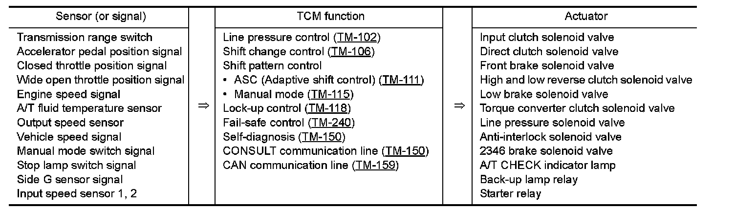 - The A/T senses vehicle operating conditions through various sensors or signals. It always controls the optimum shift position and reduces shifting and lock-up shocks.