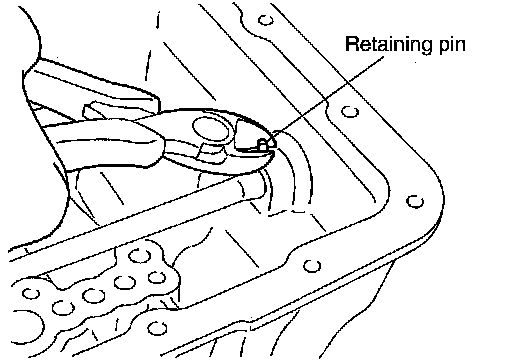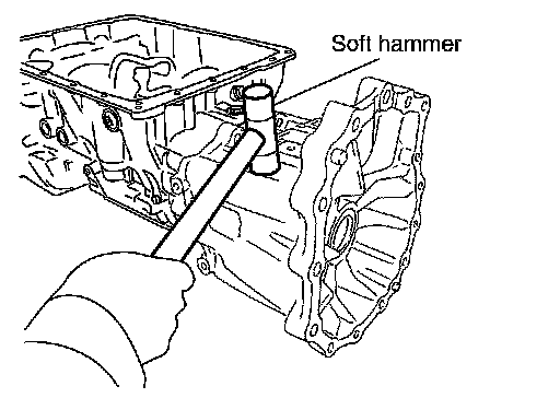 Press out snap ring from the transmission case oil pan side gap with a flat-bladed screwdriver, and remove it using a another screwdriver.