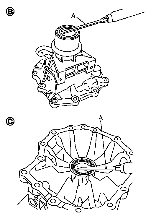 68.Remove rear oil seal from rear extension (B) or adapter case (C)