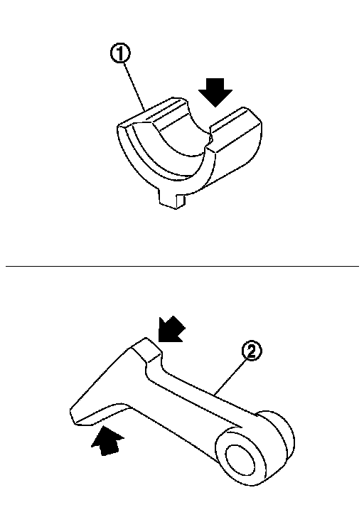 If the contact surface on parking actuator support (1) and parking pawl (2) has excessive wear, abrasion, bend or any other damage, replace the components.