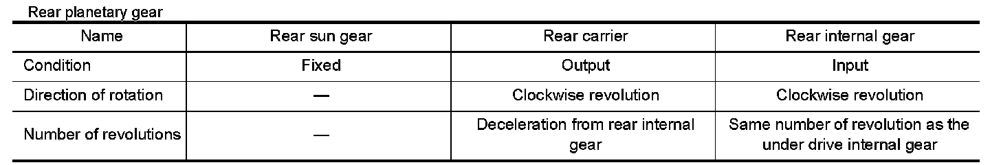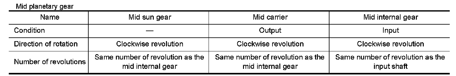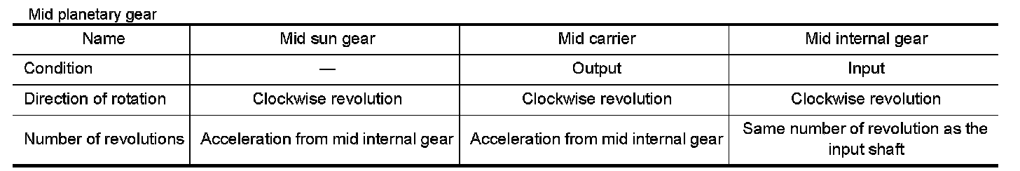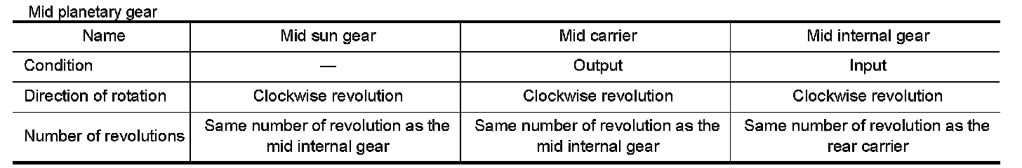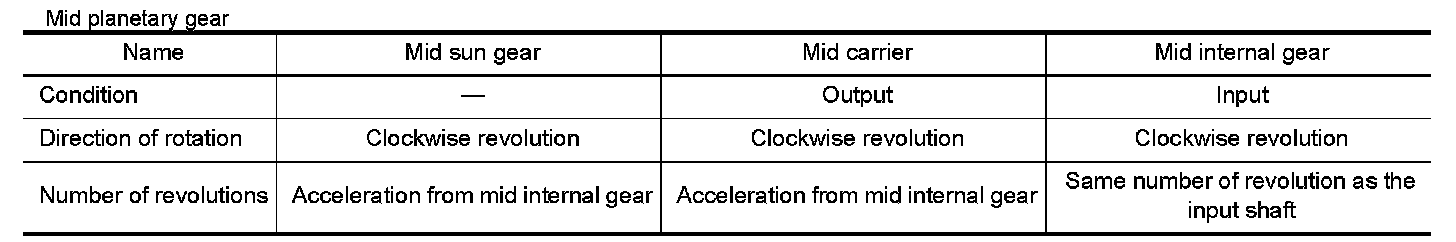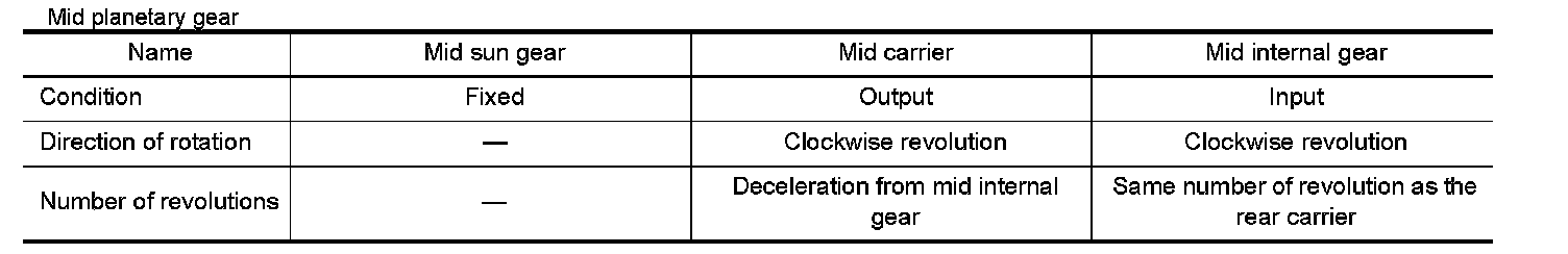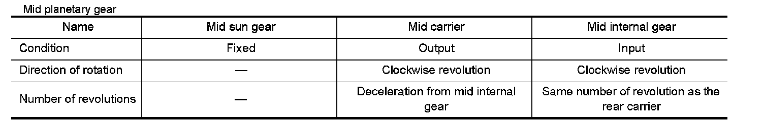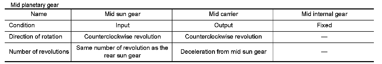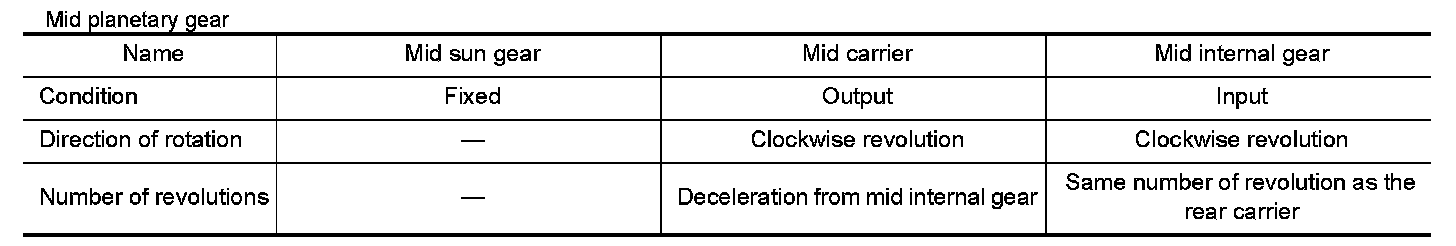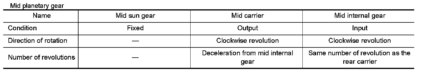 - The rear carrier and the mid internal gear are fixed by the reverse brake.