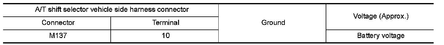 4.Check voltage between A/T shift selector vehicle side harness connector terminals.