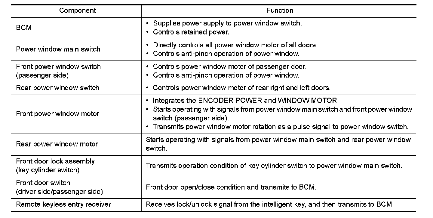 Component Description Front Window Anti-Pinch