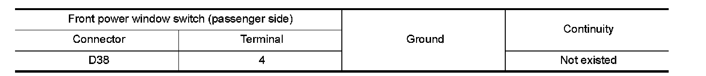4.Check continuity between front power window switch (passenger side) harness connector and ground.