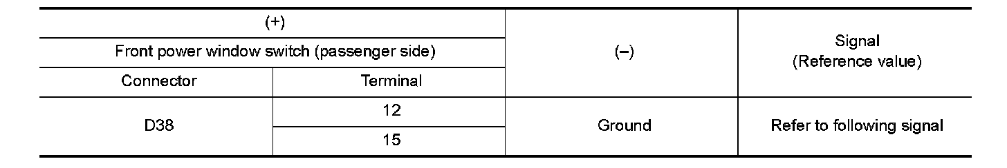 2.Check signal between front power window switch (passenger side) harness connector and ground using oscilloscope.