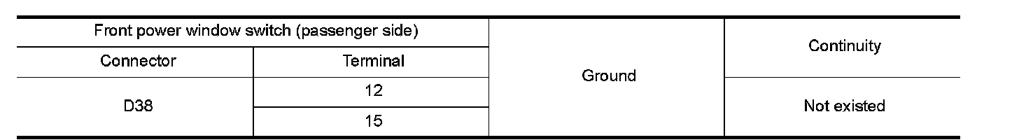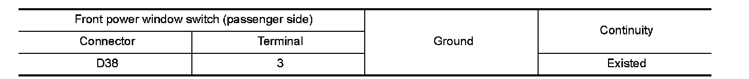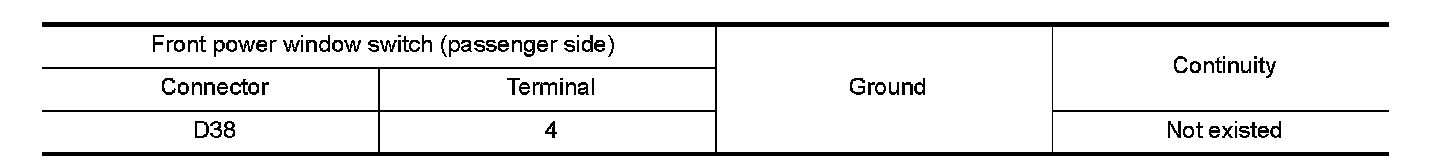 2.Check continuity between front power window switch (passenger side) harness connector and ground.