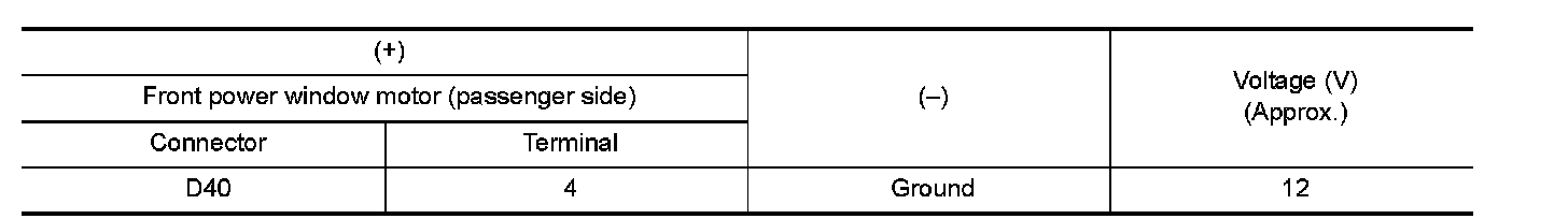 3.Check voltage between front power window motor (passenger side) harness connector and ground.