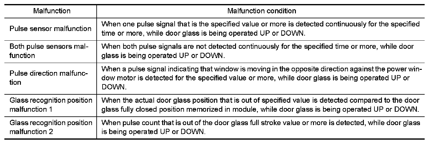 When fail-safe control is activated, perform initialization procedure to recover. If a malfunction is detected in power window switch or more, fail-safe control is activated again.