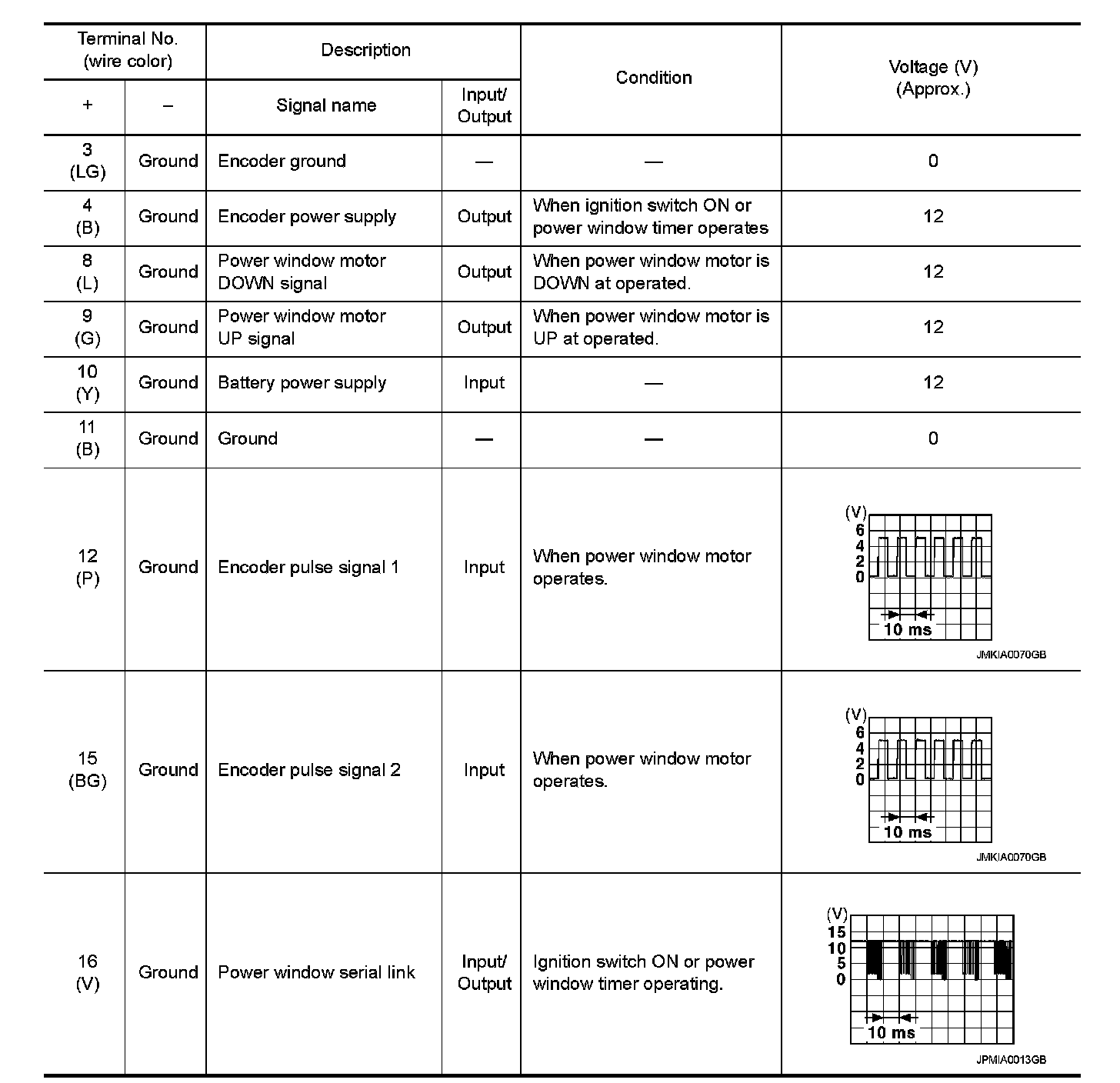Pinout Values and Diagnostic Parameters