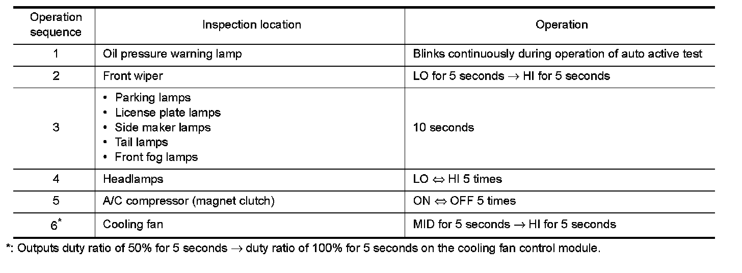 5.The oil pressure warning lamp starts blinking when the auto active test starts.