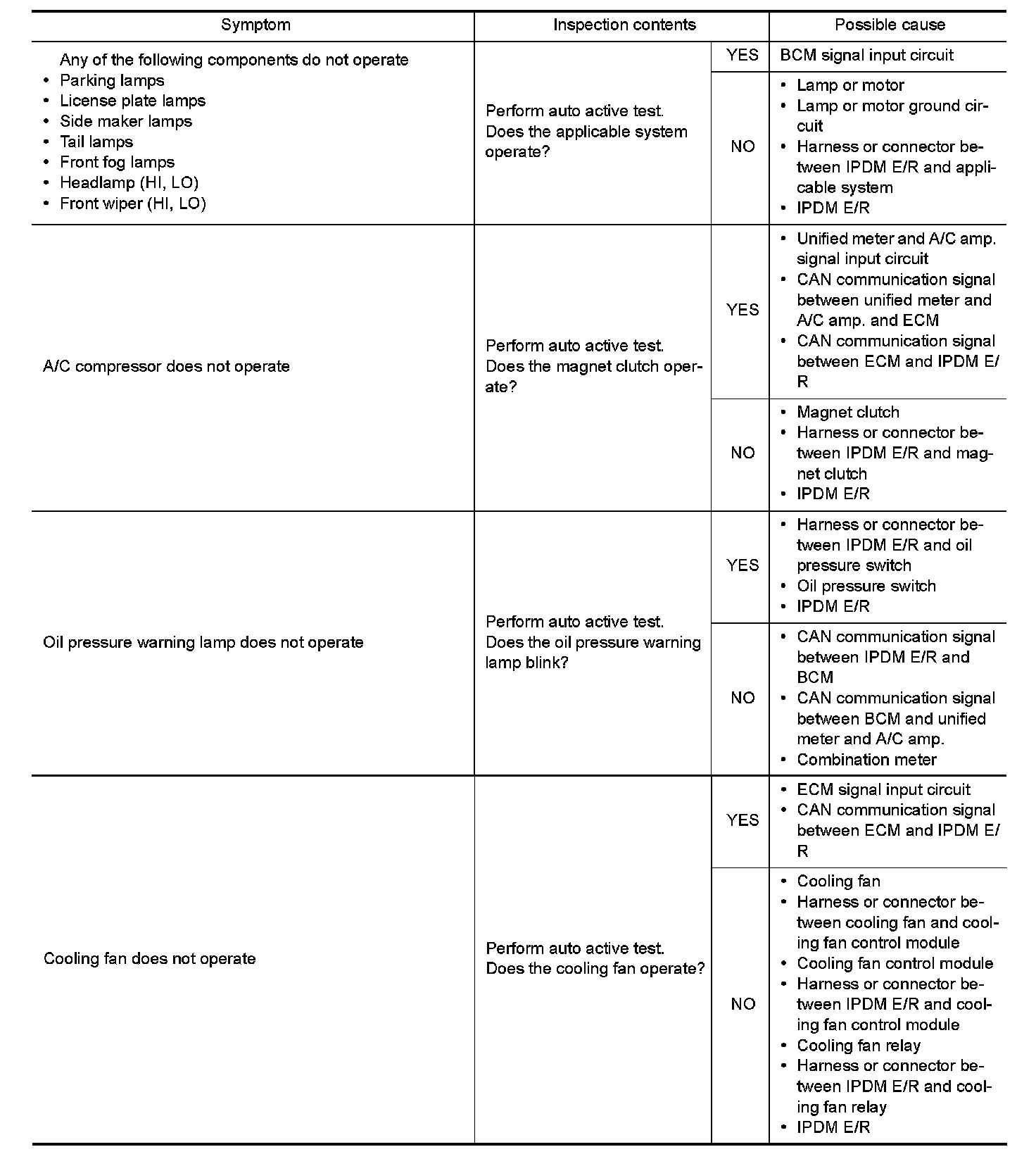 - The auto active test facilitates troubleshooting if any systems controlled by IPDM E/R cannot be operated.
