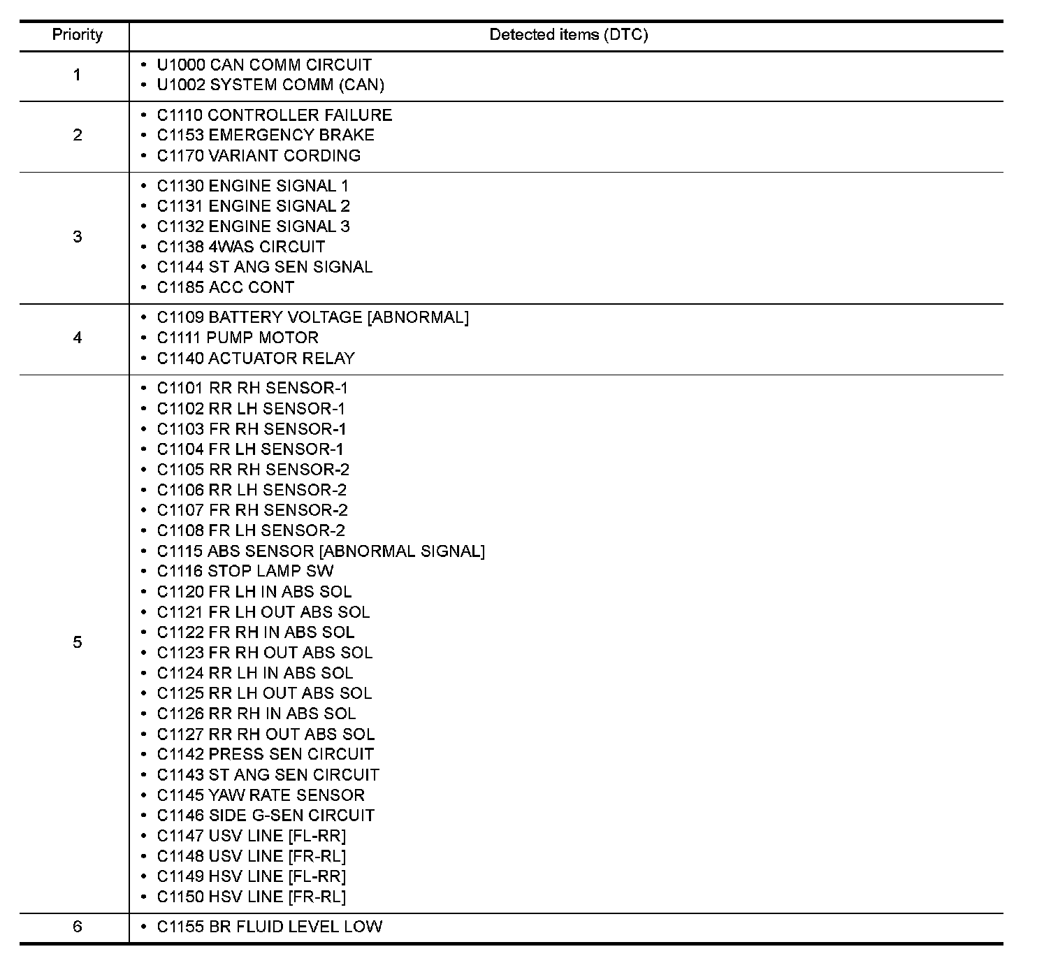 DTC Inspection Priority Chart