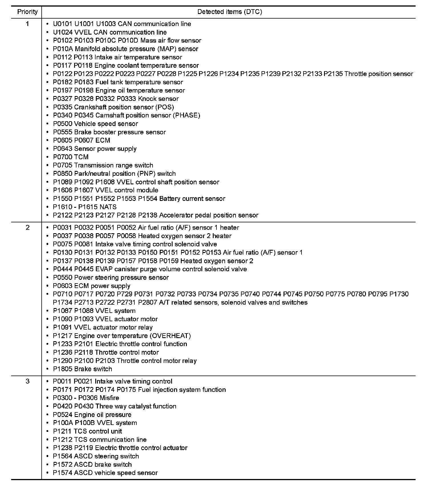 DTC Inspection Priority Chart