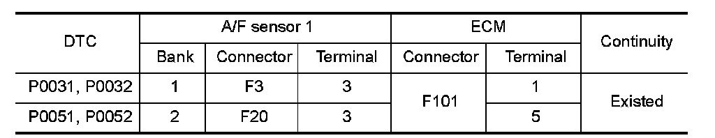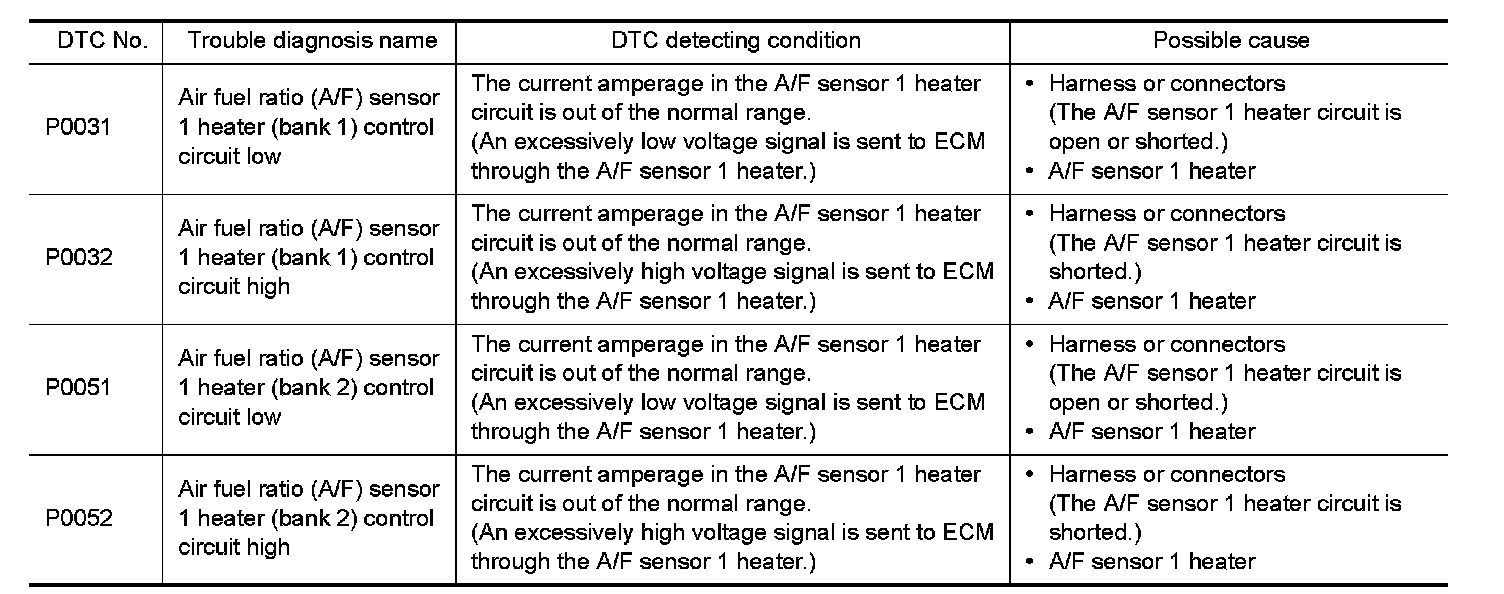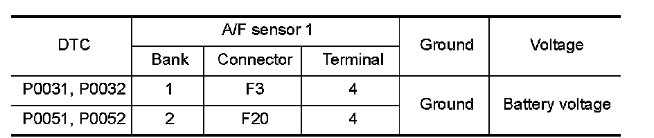 P0031, P0032, P0051, P0052 A/F SENSOR 1 HEATER