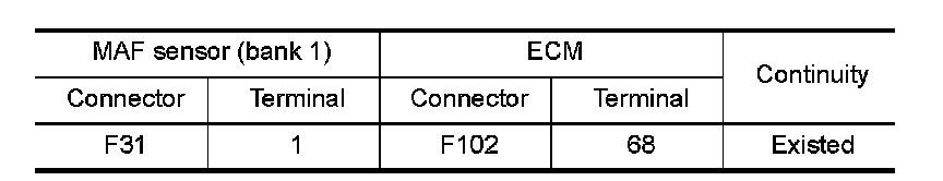 3.Check the continuity between mass air flow sensor (bank 1) harness connector and ECM harness connector.