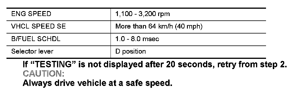 2.Drive the vehicle at a speed of 80 km/h (50 MPH) for a few minutes in the suitable gear position.