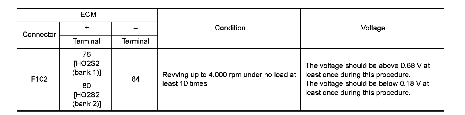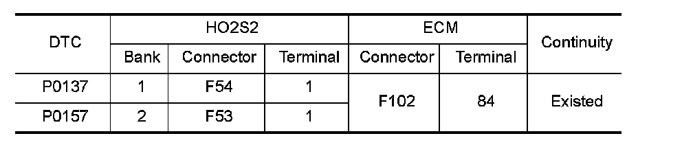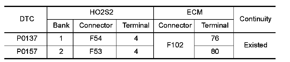 1.Check the continuity between HO2S2 harness connector and ECM harness connector.