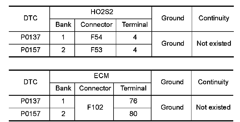 2.Check the continuity between HO2S2 harness connector and ground, or ECM harness connector and ground.