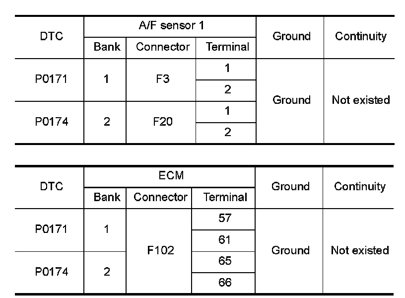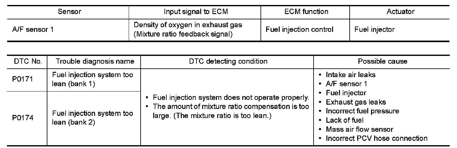 P0171, P0174 FUEL INJECTION SYSTEM FUNCTION