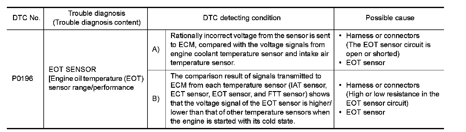 If DTC P0196 is displayed with P0197 or P0198, first perform the trouble diagnosis for DTC P0197 or