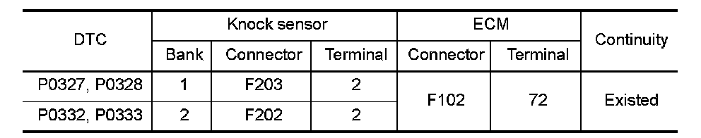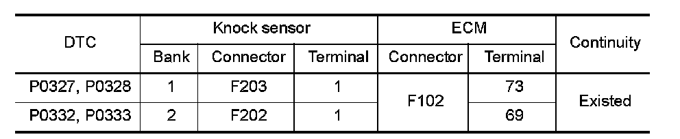 1.Check the continuity between knock sensor harness connector and ECM harness connector.