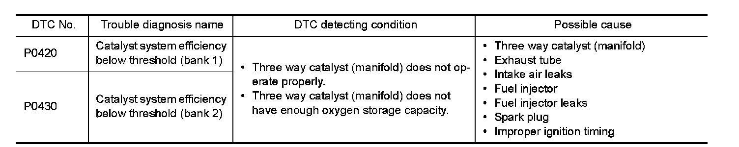 P0420, P0430 THREE WAY CATALYST FUNCTION