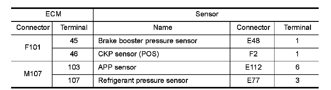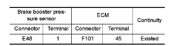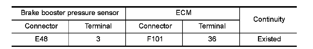 1.Check the continuity between brake booster pressure sensor harness connector and ECM harness connector.