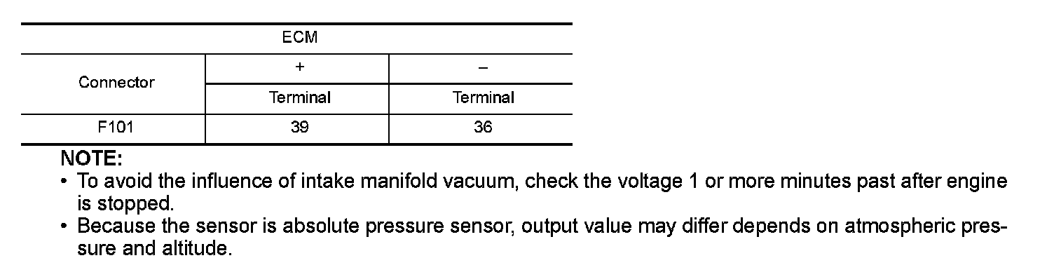 - To avoid the influence of intake manifold vacuum, check the voltage 1 or more minutes past after engine is stopped.