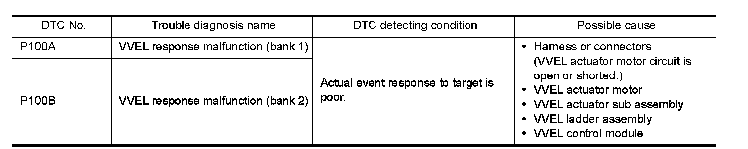1.Replace cylinder head, VVEL ladder assembly and VVEL actuator sub assembly. Refer to "Disassembly and Assembly" Disassembly and Assembly or "Exploded View" Exploded View.