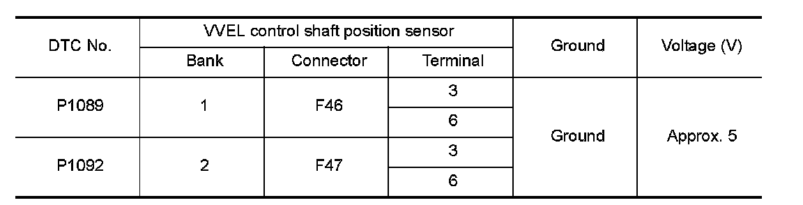 6. VVEL CONTROL SHAFT POSITION SENSOR INPUT SIGNAL CIRCUIT FOR OPEN AND SHORT