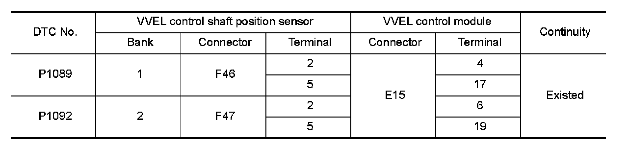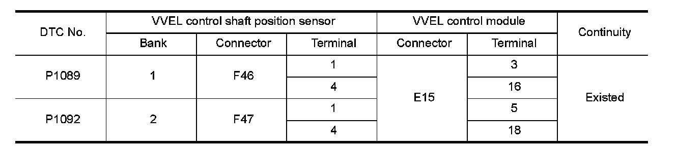 1.Check the continuity between VVEL control shaft position sensor harness connector and VVEL control module harness connector.