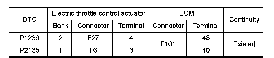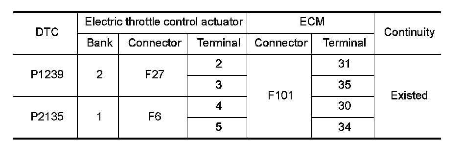1.Check the continuity between electric throttle control actuator harness connector and ECM harness connector.