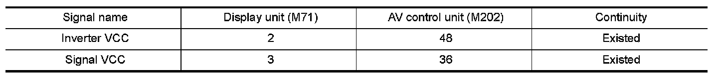 3.Check continuity between display unit harness connector M71 and AV control unit harness connector.