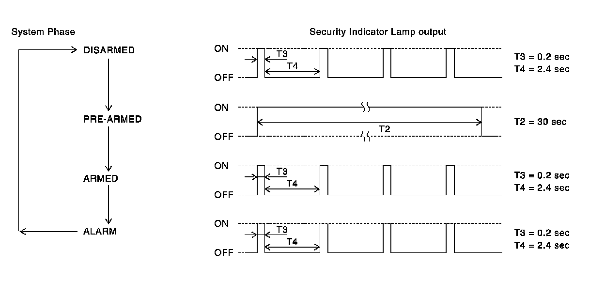 - When the vehicle security system is in the disarmed phase, the security indicator lamp blinks every 2.4 seconds.