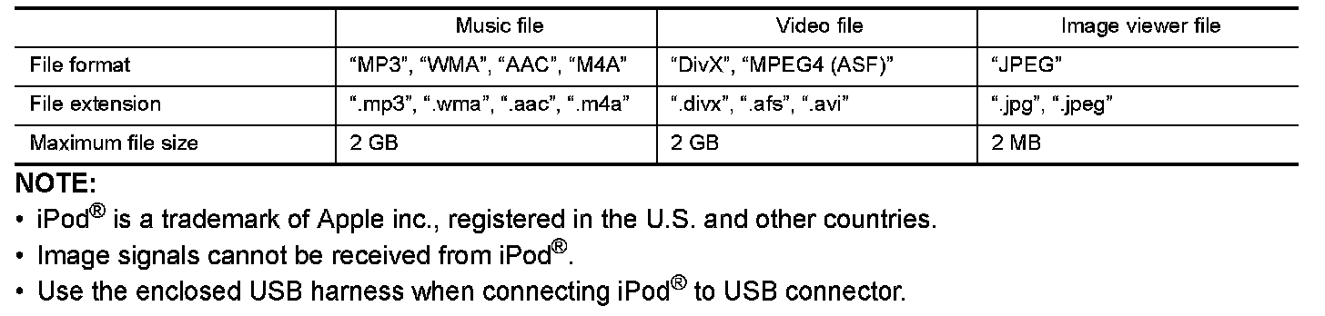 - Connecting iPod� or USB memory allows the driver to play iPod� music files or USB memory-stored music files, video data, and image viewer data.