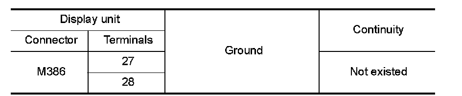 4.Check continuity between display unit harness connector and ground.