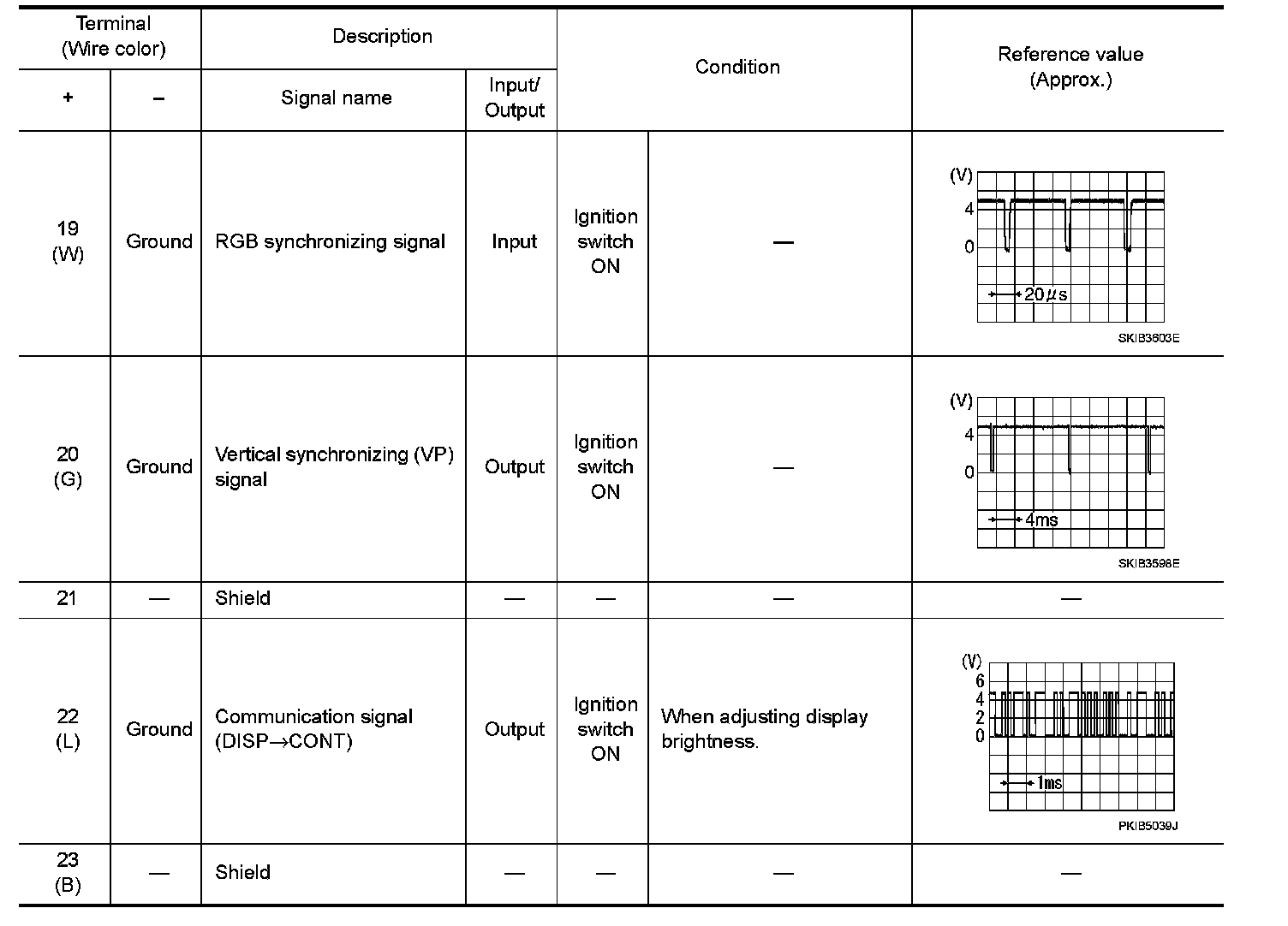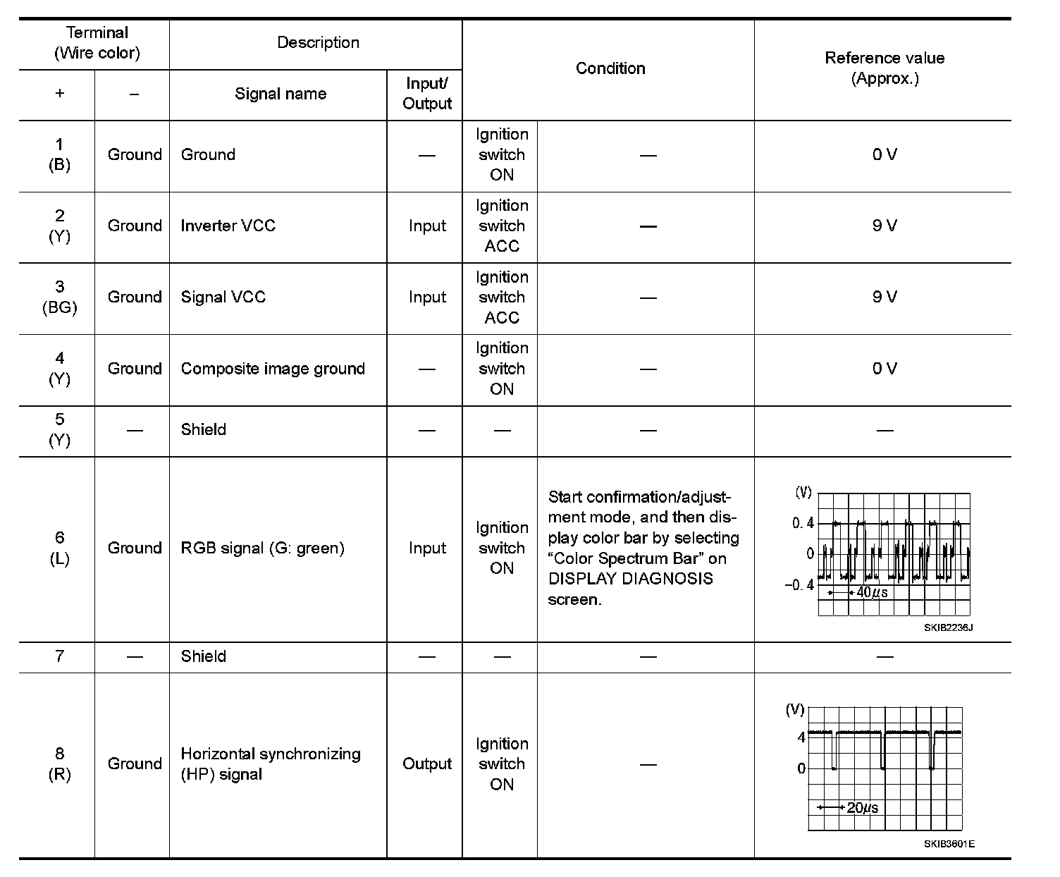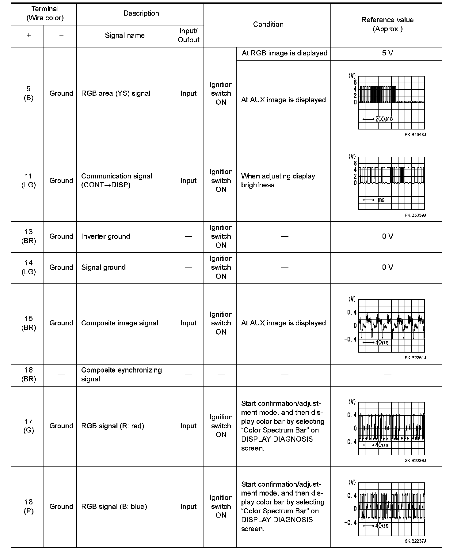 Pinout Values and Diagnostic Parameters