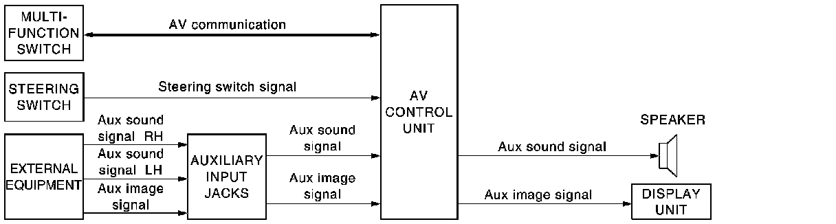 - Operation can be performed with multifunction switch and steering switch. Multifunction switch transmits operation signal to AV control unit with communication.