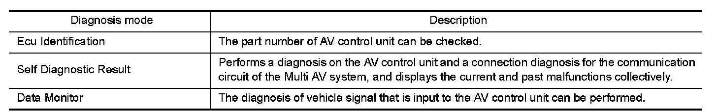 DIAGNOSIS SYSTEM (AV CONTROL UNIT)