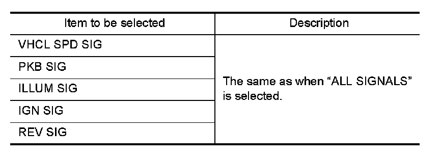 Allows the technician to select which vehicle signals should be displayed and displays the status of the selected vehicle signals.