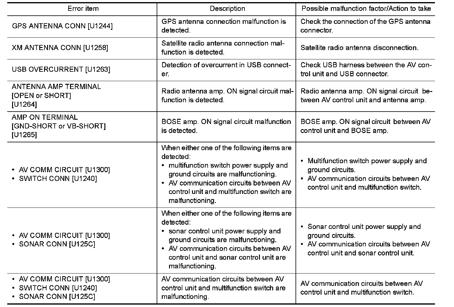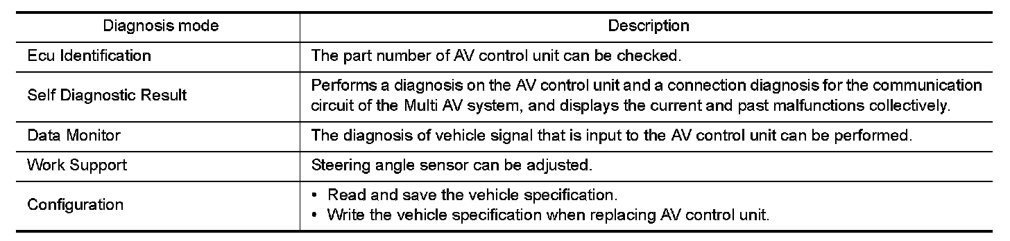 DIAGNOSIS SYSTEM (AV CONTROL UNIT)