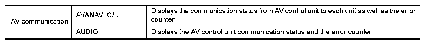 When "AV communication" of "CAN Diag Support Monitor" is selected, the following function will be performed.