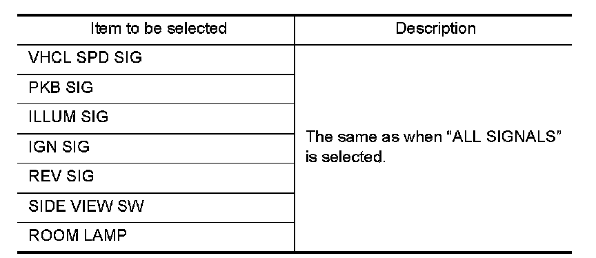 Allows the technician to select which vehicle signals should be displayed and displays the status of the selected vehicle signals.