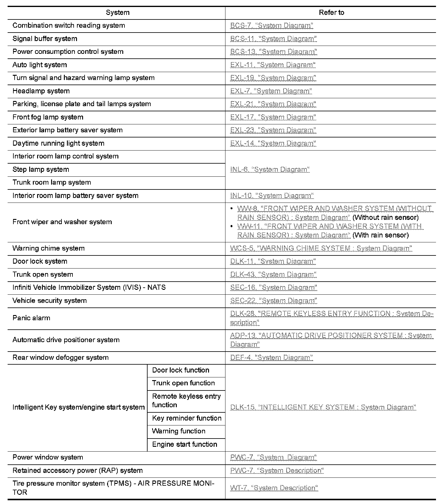 - BCM is equipped with the diagnosis function that performs the diagnosis with CONSULT and various settings.