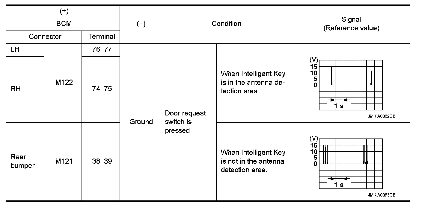 2.Check signal between BCM harness connector and ground using oscilloscope.
