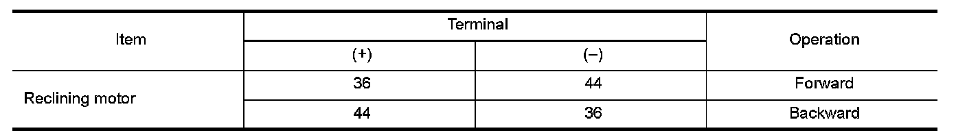 3.Supply reclining motor terminals with battery voltage and check operation.