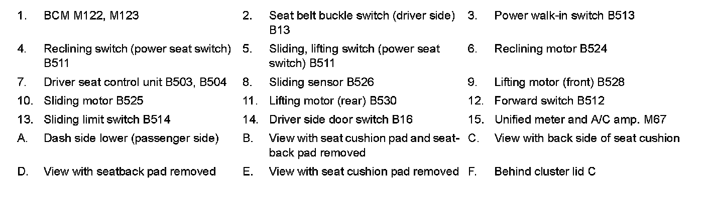 POWER SEAT FUNCTION : Component Parts Location