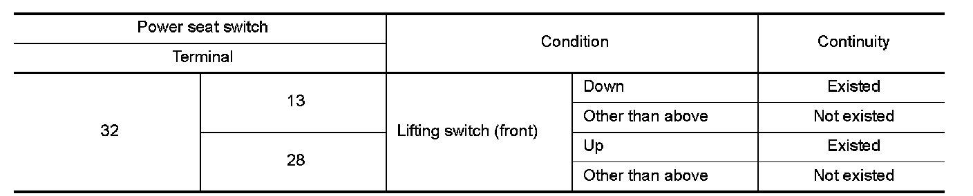 3.Check continuity between power seat switch terminals.