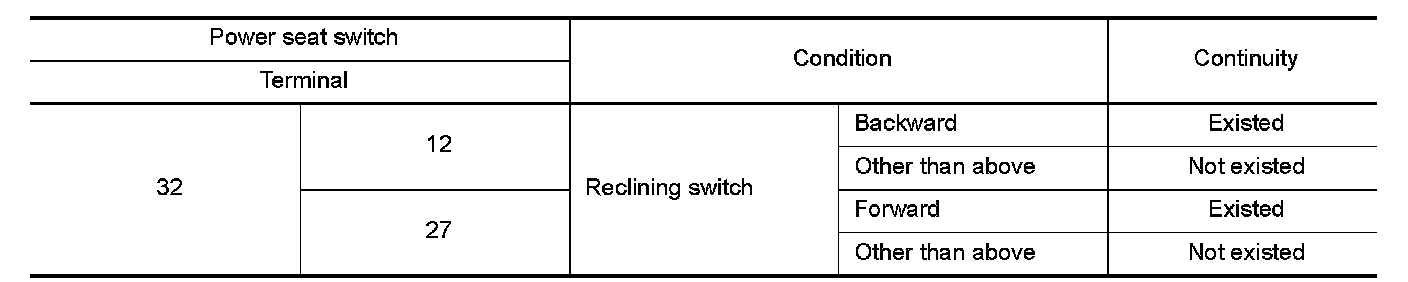 NO- Replace power seat switch. Refer to "Removal and Installation" Power Seat Switch.