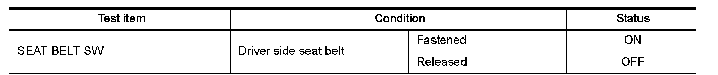 2.Select "SEAT BELT SW" in the "Data Monitor" mode using CONSULT.